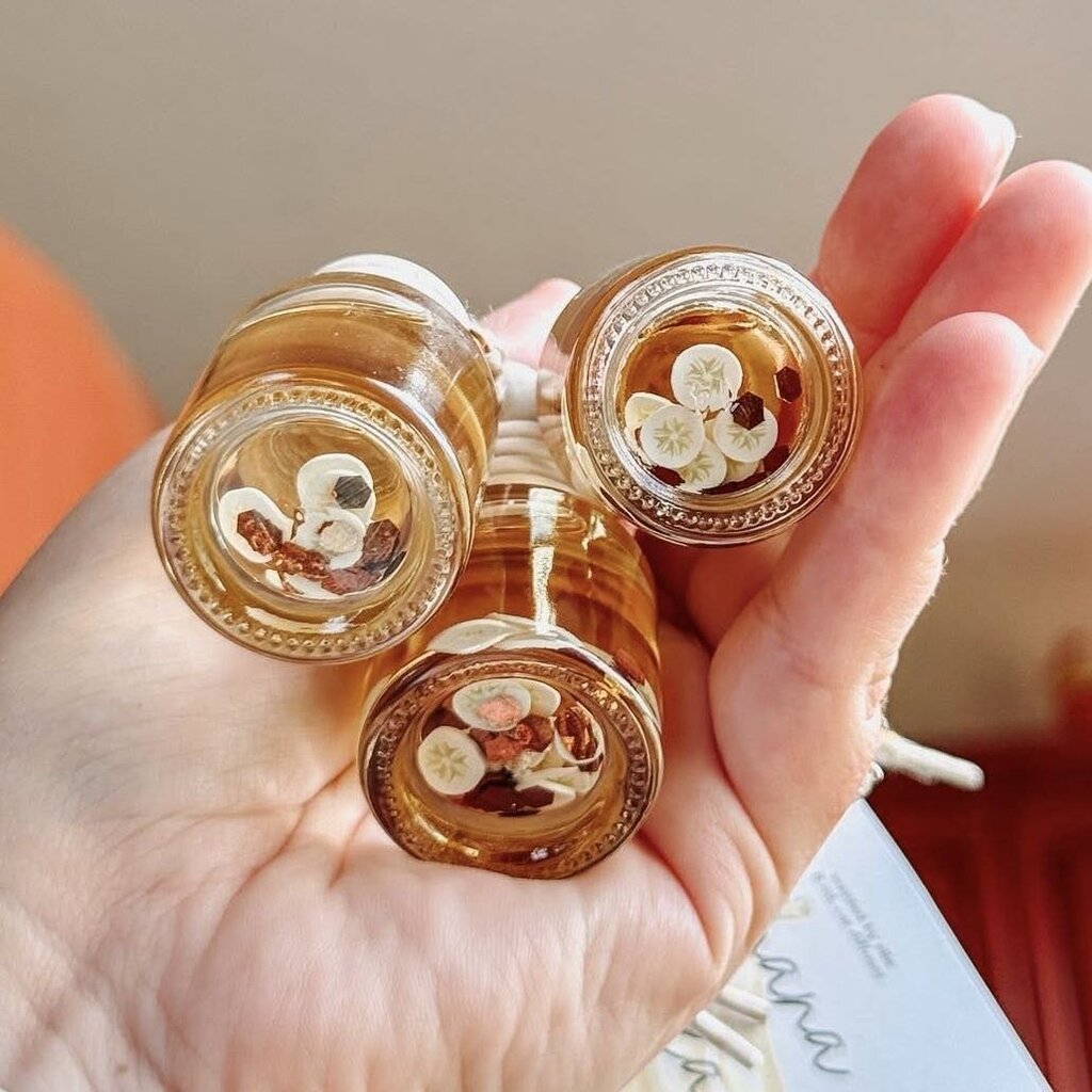 Smells like you've been bakin' all morning-without ever turning on the oven. Banana Bread wraps your ride in warm, fresh-from-the-oven vibes with cozy notes of ripe banana, smooth vanilla, and a hint of toasted walnut. It's the kind of scent that reminds you of slow Sunday mornings, grandma's kitchen, and sharing a slice after church with the whole crew. Perfect for western gals who juggle it all-from feed runs to football games, fall markets to front porch chats. It's sweet, nostalgic, and only here for the season. Scent notes: Banana, Vanilla, Walnut Decorative filler: Faux banana slices and thick glitter. 8ml bottle, shapes my vary. How to Use: Unscrew wooden lid and remove stopper. Replace wooden lid, do not over tighten. Turn bottle upside down for 2-3 seconds to allow the oil to infuse the lid. Keep bottle upright at all times to avoid leakage. Wipe spills and leakage immediately. Avoid contact with eyes, furnishings and car interior. DO NOT INGEST.