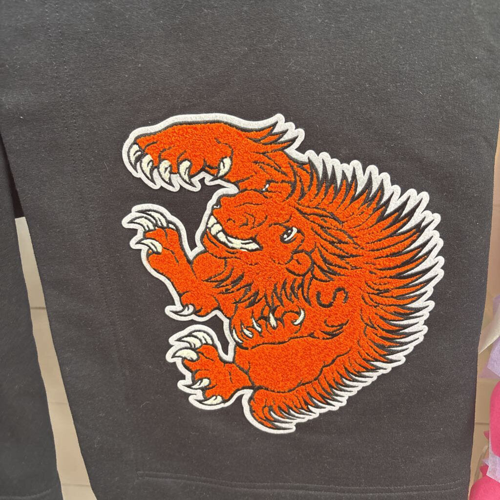 Black stadium blanket with large chenille porcupine
