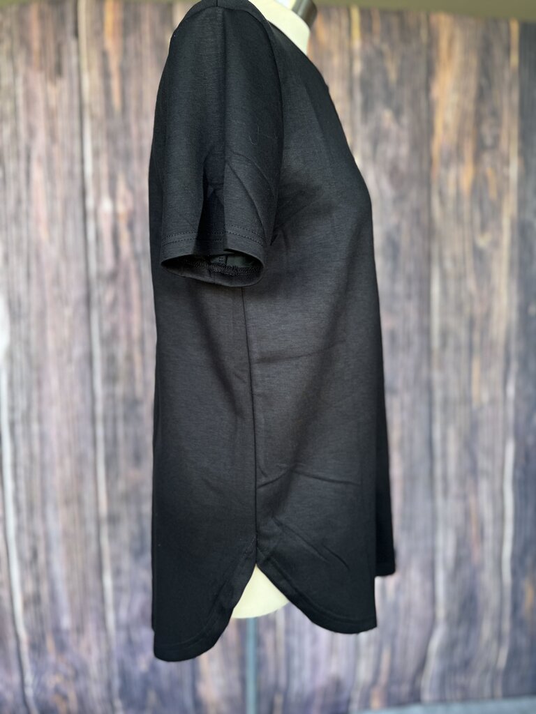 Your everyday tee just got a dreamy little upgrade. The Desert Glow Cloud Tee is soft as a breeze and easy as your favorite Saturday morning. With its buttery fabric, rounded hem, and relaxed-not boxy-fit, this one moves with you without clinging to you. Why you'll love it: Not fitted, not oversized-just right Relaxed, flowy silhouette that runs true to size Rounded hem for that flattering, easy finish Soft, breathable fabric that feels like a cloud Perfect for layering under a denim jacket or pairing with your favorite sterling stack. This tee was made for Texas sunsets and women who carry sunshine with them. Fit: Small: Sizes 4/6 Medium: Sizes 8/10 Large: Sizes 11/12 XL: Sizes 14/16 Material: 95% Rayon / 5% Spandex