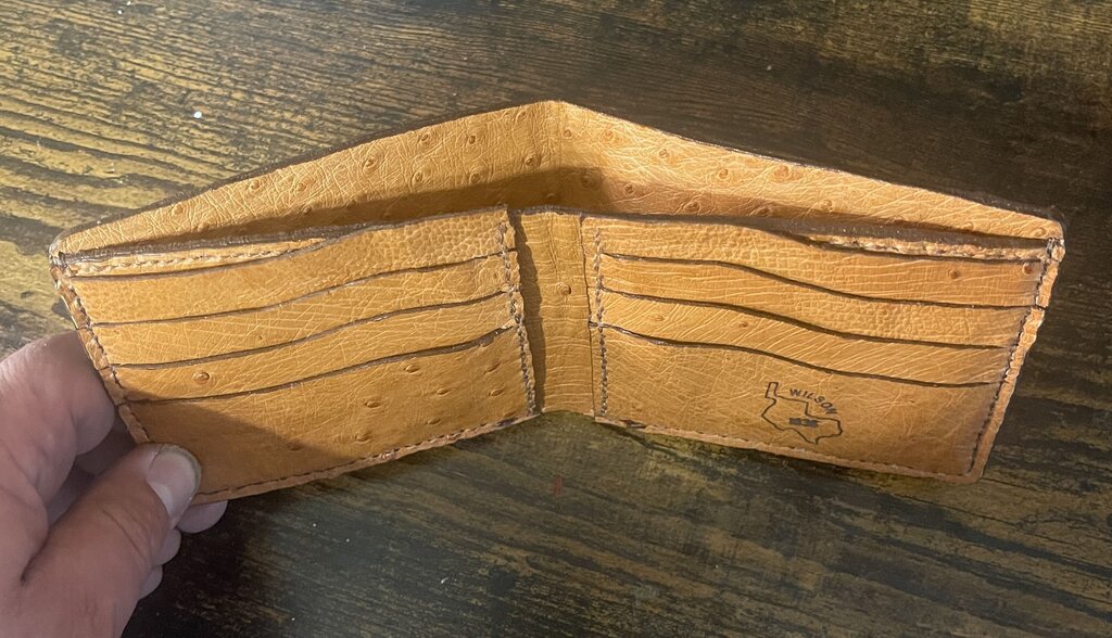 100% ostrich leather bifold.