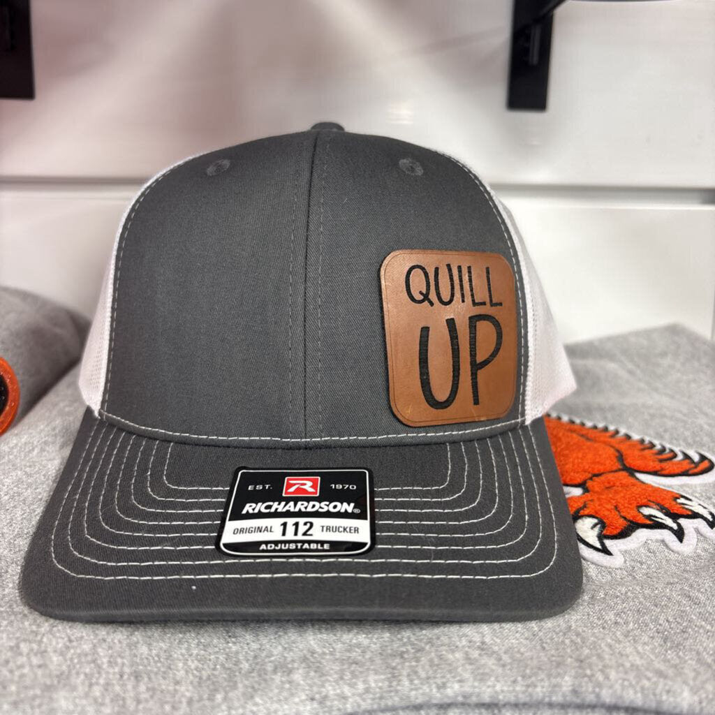 Dark gray and white Richardson 112 with Quill UP leather patch